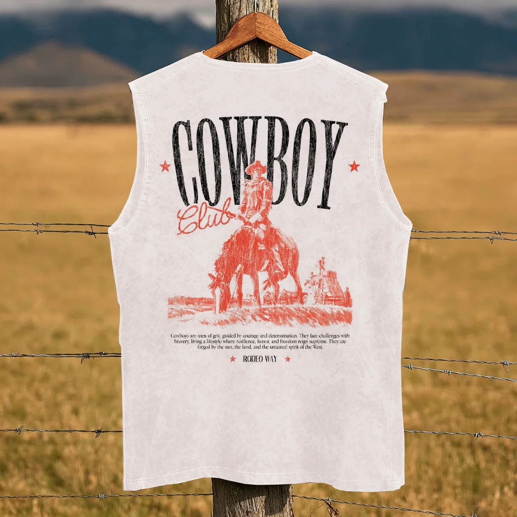 • Design Elements: Bold "Cowboy" text print, vintage-inspired artwork, red star accents