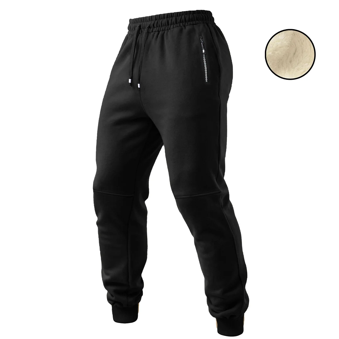 Men's Vintage Fleece Zipper Pocket Elastic Drawstring Jogging Sweatpants