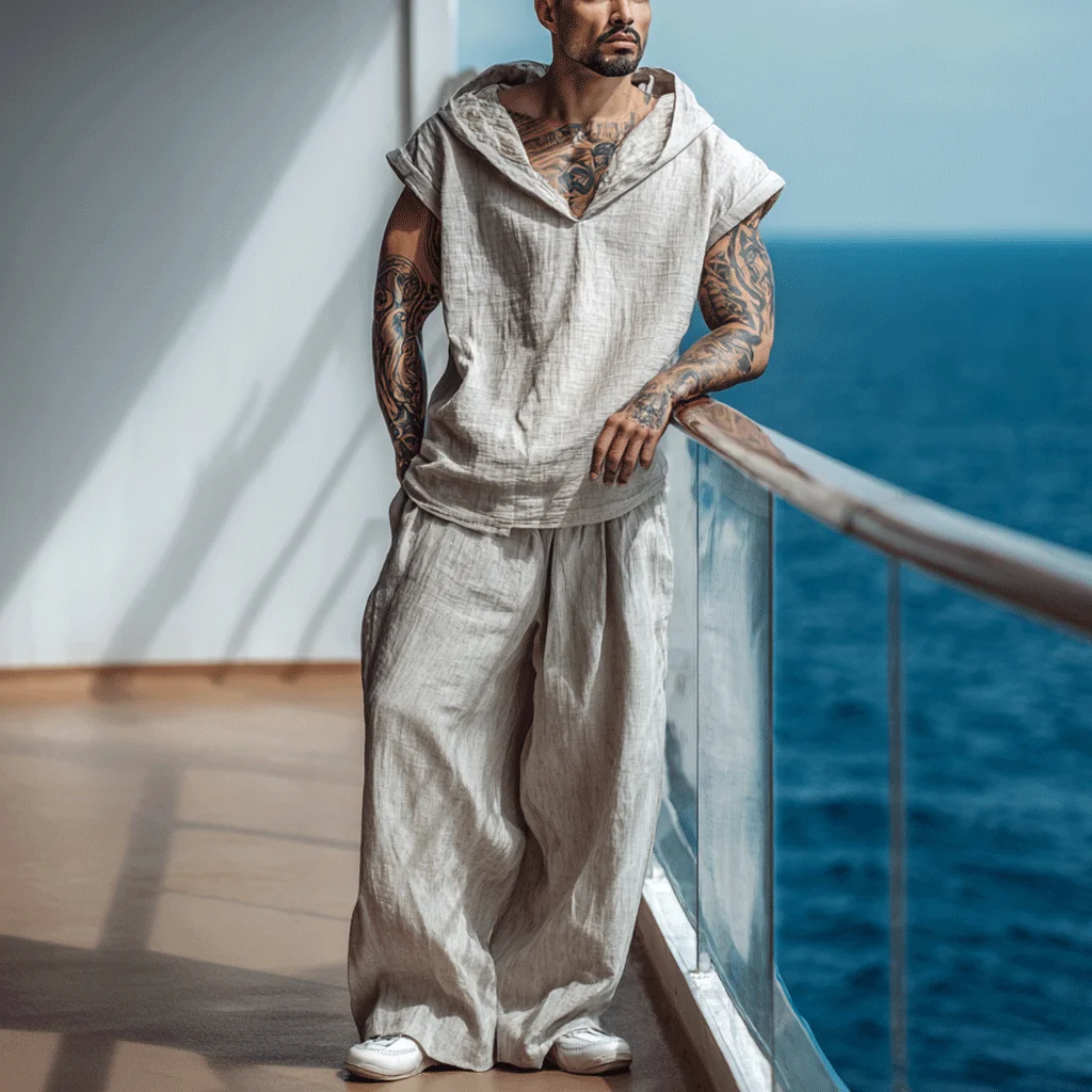 • Design Elements: Oversized hood, wide leg pants, clean lines